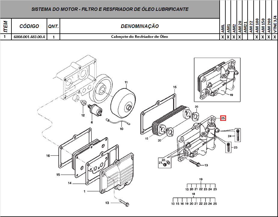 CABEÇOTE DO RESFRIADOR DE ÓLEO AGRALE MARRUÁ - 6008.001.483.00.4 - AM1 AM20 AM21 VTNE3/4