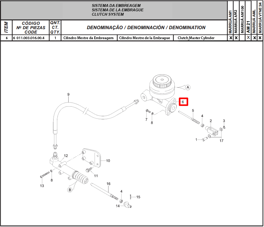 CILINDRO MESTRE EMBREAGEM AGRALE MARRUÁ AM1,AM2,AML,AM20,3/4: 6011.003.016.00.4