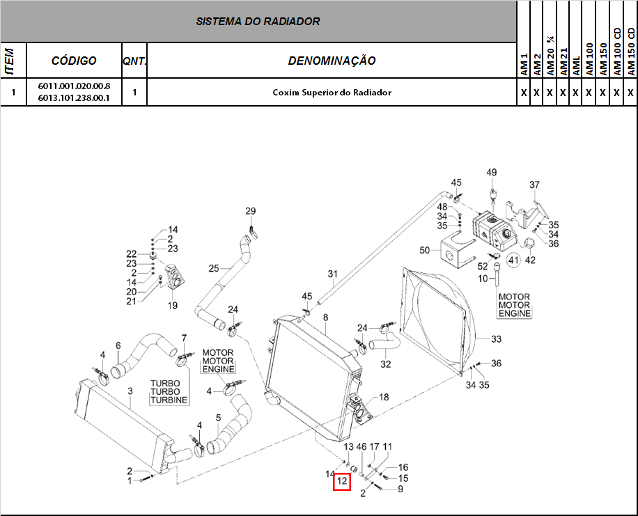 COXIM SUPERIOR DO RADIADOR AGRALE MARRUÁ - 6011.001.020.00.8 - 6013.101.238.00.1