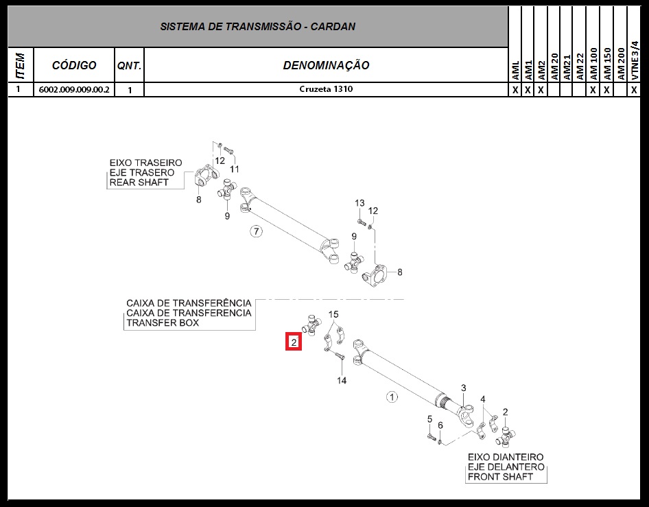 CRUZETA CARDAN 1310 AGRALE MARRUÁ - 6002.009.009.00.2