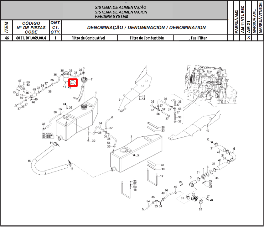 FILTRO DE COMBUSTÍVEL AGRALE MARRUÁ COM SENSOR AM21,AM100,AM150,AML,3/4: 6011.101.069.00.4