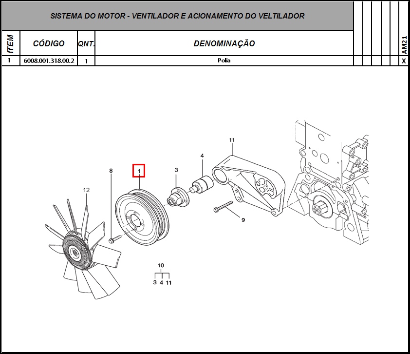 POLIA DO VENTILADOR AGRALE MARRUÁ AM1,AM2,AML, AM20, AM21: 6008.001.318.00.2