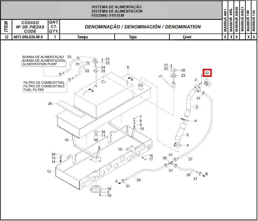 TAMPA TANQUE COMBUSTÍVEL AGRALE MARRUÁ AM100, AM150, AM1, AML, AM20 : 6011.006.026.00.0